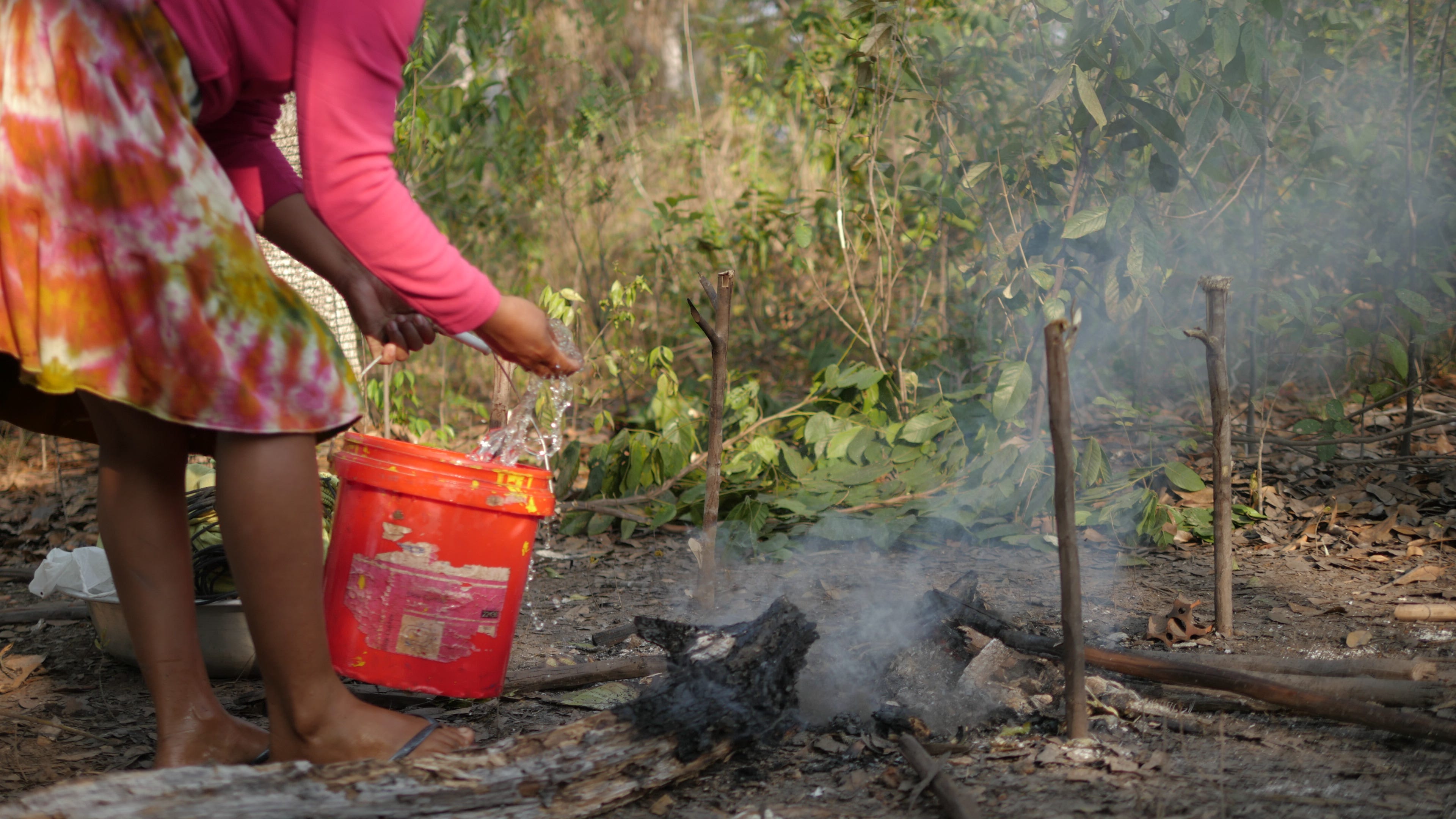 At 7 in the morning families start leaving the camp to return to the village, taking with them what remains of the smoked fish. Children help to collect water from the lake to put the fires out. Not a single ember is left burning. In the past, they didn’t have to worry about this because leaf cover was extremely humid and the fire went out by itself. But with climate change, they have become more concerned about the embers.